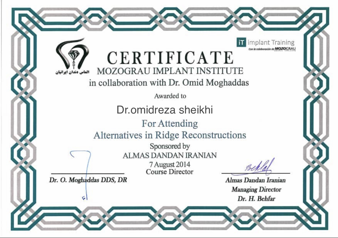 دکتر امیدرضا شیخی کوهسار، جراح و دندانپزشک در گنبد کاووس، با ارائه خدمات تخصصی دندانپزشکی با جدیدترین تجهیزات و متدهای روز، لبخندی زیبا و سالم را برای شما به ارمغان میآورد. دقت، تخصص و اطمینان در هر لبخند، همراه با نوبتدهی سریع و خدمات حرفهای در محیطی آرام و مدرن، هدف اصلی ما در مراقبت از لبخند شماست.
